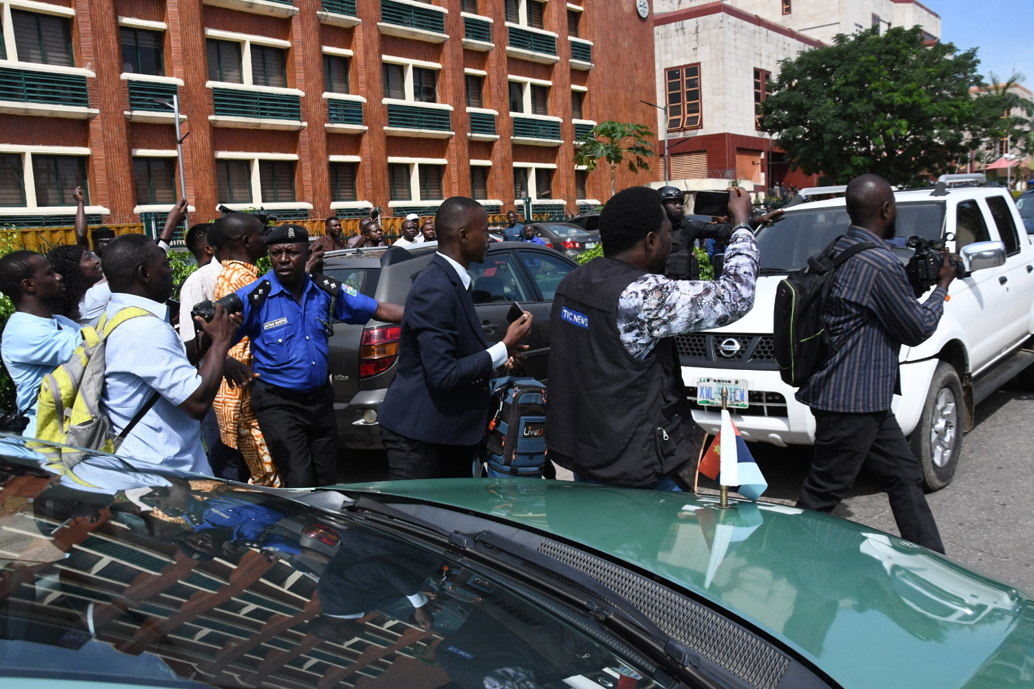 Godwin Emefiele, the suspended Central Bank of Nigeria (CBN), was helped to beat paparazzi at FCT High Court in Abuja by going through the court’s backdoor.