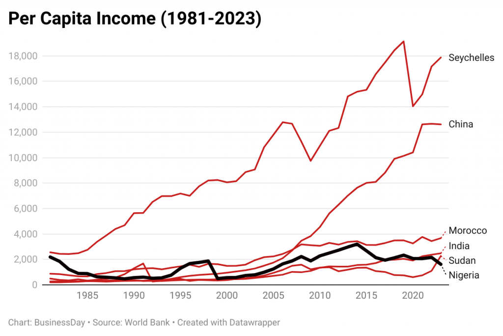 In 1981, Nigeria’s per capita GDP was ahead of countries like India, Morocco, and even China—and only 15 percent below that of Seychelles. Fast forward 42 years, and while Nigeria stumbles, some of these nations have emerged as industrial hubs. China, in particular, is a striking example of how disciplined planning can transform a nation.