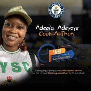 Adeola Adeyeye, an Ondo chef has begun a 150-hour cook-a-thon in an attempt to break Hilda Baci’s Guinness World Record for the longest cooking marathon of 93 hours and 11 minutes.