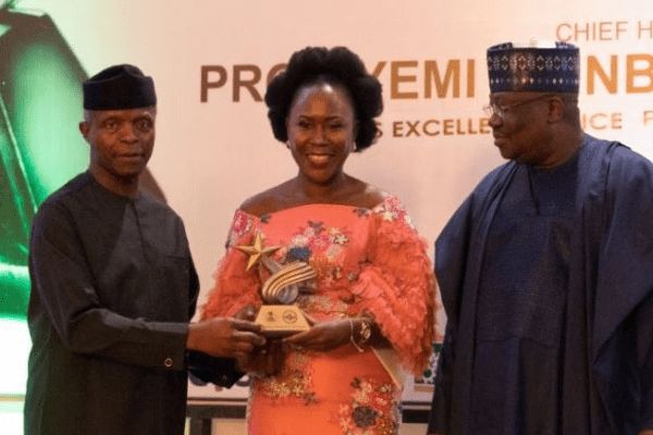 This award was presented to her by the Vice President of Nigeria, Prof. Yemi Osinbajo and the Senate President, Ahmed Ibrahim Lawan during the 2nd National MSME Awards 2019 at the Banquet Hall, State House, Aso Rock, Abuja.