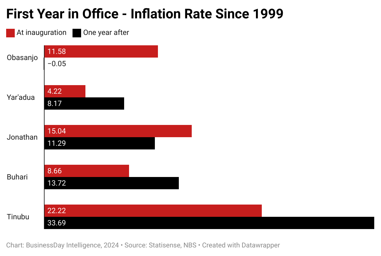 Looking at President Bola Ahmed Tinubu’s one year in office, Nigeria’s 2023 economic performance presented a mixed picture. On the positive side, government revenue more than doubled, fueled by tax reforms and increased economic activity. The long-awaited Dangote refinery and other modular refineries commenced operations, boosting domestic refining capacity and potentially reducing reliance on imported fuels. Additionally, the Central Bank cleared a backlog of foreign exchange requests exceeding $7 billion, easing pressure on businesses and individuals. There were also signs of improvement in the oil sector, with credit rating agencies upgrading Nigeria to B+ with a stable outlook and oil production climbing to 1.34 million barrels per day. However, these gains were overshadowed by significant setbacks. Nigeria’s ranking in the global economy dropped from 32nd in 2022 to 42nd in 2023. Inflation soared to a 28-year high of 33.69 percent, eroding purchasing power and causing hardship for many Nigerians. Public debt also reached a concerning level of 97 trillion naira. The security situation remained a major concern, with persistent terrorist attacks adding to the anxiety. Frequent power grid collapses further hampered economic activity and quality of life, while the rising cost of living crisis forced manufacturers to exit the market, potentially dampening future growth prospects.