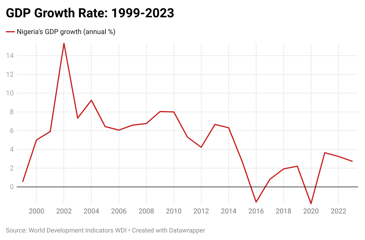 Tinubu’s Uncertain Start (2023-2024): The jury is still out on Tinubu’s first chapter. Growth showed a glimmer of hope, inching up to 2.98 percent from the previous year. However, inflation remained stubbornly high at 22.22 percent. Unemployment continued to be a major hurdle at 33 percent. There was a cautious flicker of investors’ optimism with a rise in FDI to $1.23 billion. The exchange rate, however, remained volatile, still hovering around ₦1400 to a dollar.