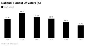 Nigeria’s election turnout is at odds with Ghana’s last presidential elections’ turnout at 68 percent. The 2017 election that brought in Liberian President George Weah had a voters’ turnout of 56 per cent.