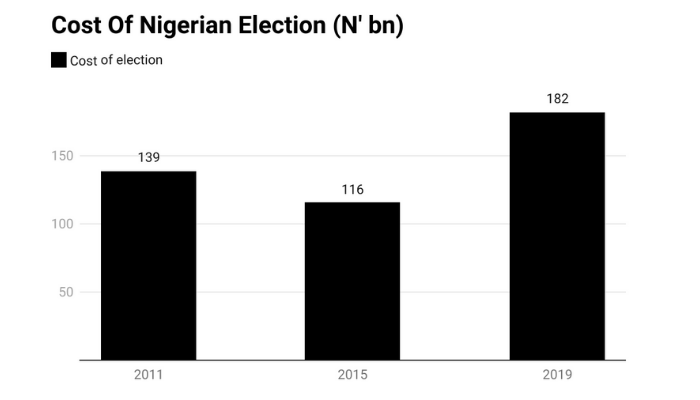 For instance, Nigeria spent a total of N139 billion conducting the 2011 general election for 73.5 million registered voters. The election budget for that year was based on an average cost of N1,893 or $9 per voter.