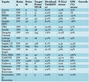As a result, RMB Stockbrokers identifies stocks that fit into its projection and these are Guaranty Holding Company Plc, Zenith Bank, United Bank for Africa (UBA), Dangote Cement, Lafarge, Flour Mills, and Dangote Sugar.
