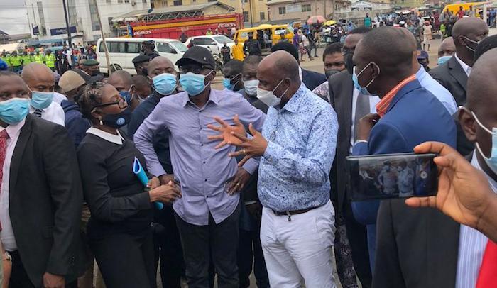 Lagos State governor, Babajide Sanwo-Olu, and minister of transportation, Chibuike Rotimi Amaechi, currently at Oshodi – site the fatal train accident, which claimed two lives in the early morning of Monday.