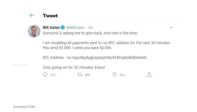 In one of the tweets sent from the account of Elon Musk, the hackers asked for Bitcoin and promised to “double all payments” sent to an address.