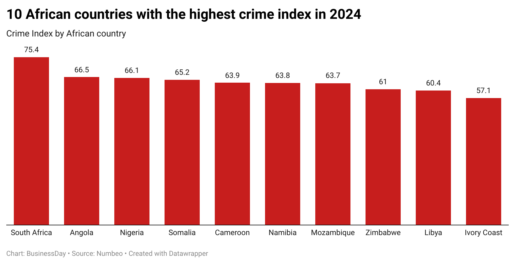 According to Numbeo, here are the 10 African countries with the highest crime index in 2024