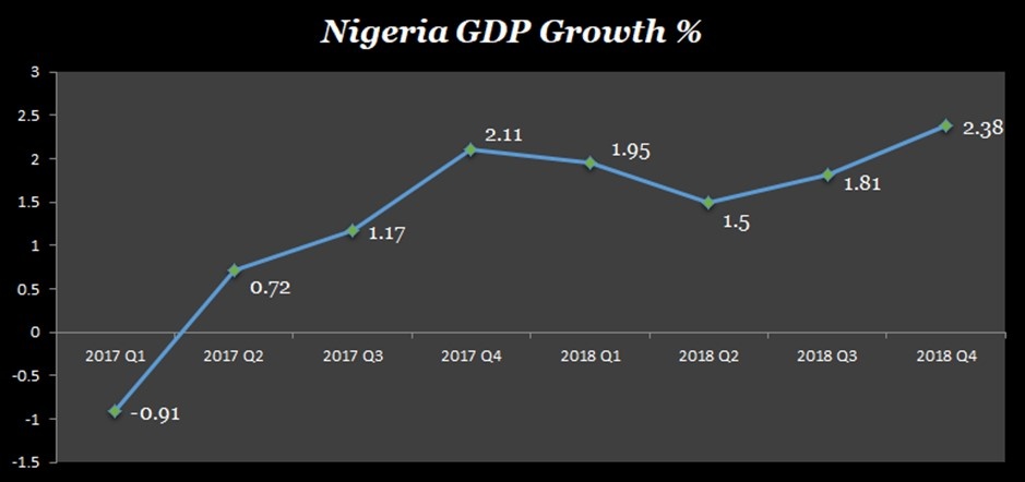 Evident in the Nigerian GDP report released by the National Bureau of Statistics (NBS), since the country exited recession in the second quarter of 2017, GDP growth has barely struggled to hit a 2 percent growth.