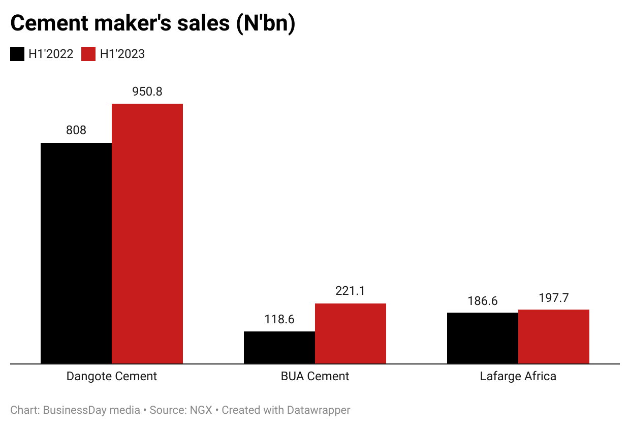 Cement makers recorded a 23.4 percent increase in sales to N1.37 trillion in the first half of 2023 from N1.11 trillion in the first half of 2022.