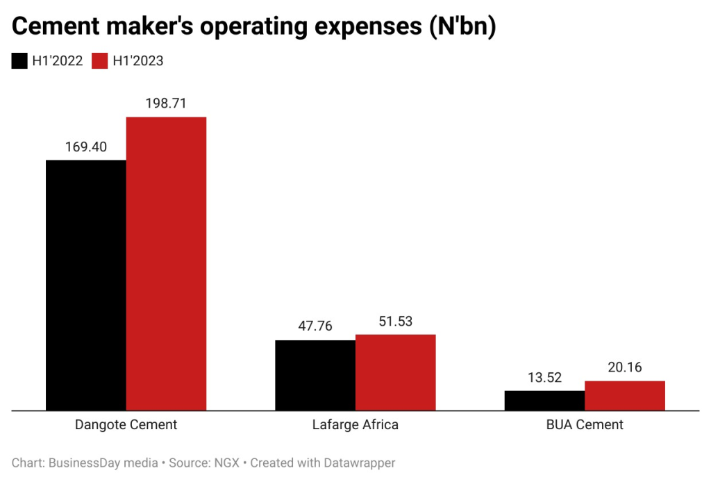 Cement makers saw operating expenses climb 17 percent to reach N270.4 billion in the first half of 2023 from N230.68 billion in a similar period in 2022.