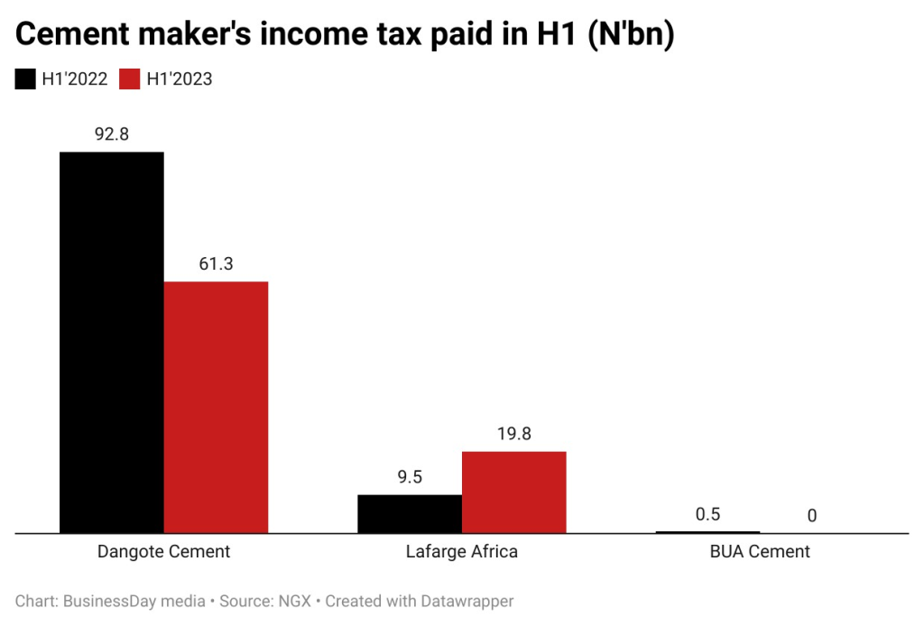 BUA Cement did not record tax payments for the first half of 2023 while N513.46 million was recorded in the first half of 2022.