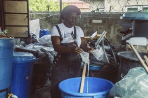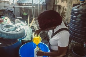 Briggs pours finished liquid soap in a 4.5-litre keg. “In this pandemic, I supply to schools that practice hand-washing with my soap. It is a business that will outlive me. I’m building a dynasty. It’s not just about me, but I’m building a business that will empower lives, equip young people and train them,” she said.
