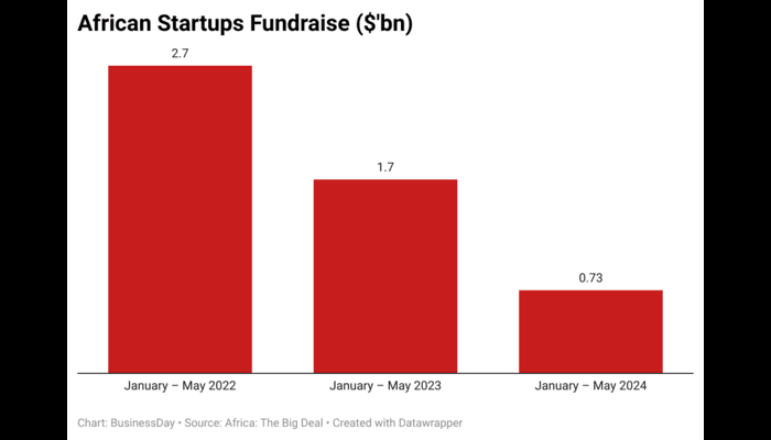 According to Africa: The Big Deal, a data insight firm that tracks deals above $100,000, African startups announced $729 million in funding in the first five months of 2024, with debt financing accounting for 35 percent. This amount pales compared to the $1.7 billion announced in the same period of 2023 and $2.7 billion in 2022, highlighting the difficult funding climate for startups.