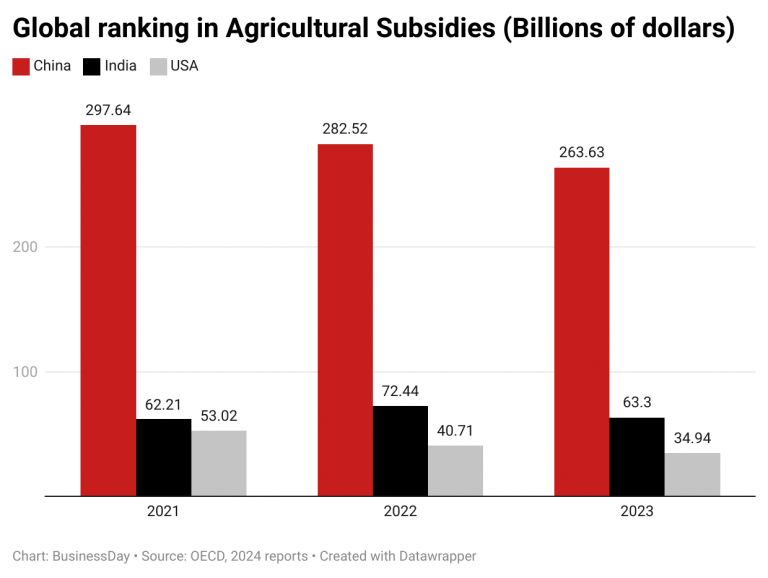 Recent OECD reports show that from 2021 to 2023, China, India, and the United States were the top countries in global agricultural subsidies.