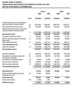 The CBN of course did not make a loss in 2022. It managed a profit of just over N100 billion.