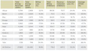 Collection losses are incurred when a distribution company (DisCo) is not able to collect the full amount it bills its customers for energy. Such losses occur because some customers do not pay their bills, while others pay partially. This loss occurs at the financial level, unlike others which occur at the level of physical flow of electricity. These loss levels are relatively high in the Nigeria Electricity Supply Industry. According to the Nigeria Electricity Regulatory Commission, collection losses for 2019 was at an average of 32.2%. It has, however, been argued that such loss should not exist or be at the barest minimum, since the DisCos can easily disconnect debtors from the network.
