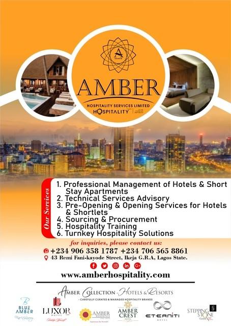 At Amber Hospitality Services Limited, we are an indigenous hospitality management company that designs, operates and manages hotels and extended stay apartments for our portfolio and for other owners and investors across Africa. We see ourselves as specialists in hosting curious minds in curated spaces, whether they are traveling for leisure, business, education or whatever their objective may be in Africa. Inclusivity in our business model means we collaborate with local communities who are our employees, suppliers, and taste makers; investors who make it possible for us to grow in the global marketplace; and you, the individuals, groups and corporates who are our guests. We have learned as Reid Hoffman, the founder of LinkedIn stated, that “no matter how brilliant the mind or strategy, if you are playing a solo game, you will always lose out to a team.” We must therefore invest in our people and in leading them correctly towards the standard we want as a nation for the tourism industry. This will make all the difference in the 21st century story of Nigeria’s tourism growth.