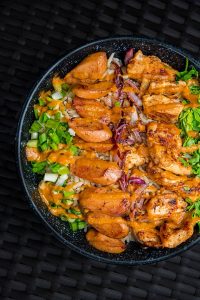 If you’re really into seafood, the menu also has you covered, with a breaded calamari appetizer paired with a honey and ginger dipping sauce. You can also fill up on prawns tossed in a spicy herb sauce with your choice of a Side.