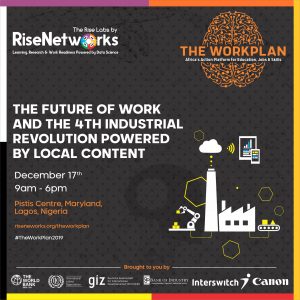 THE WORKPLAN is a conceptual initiative of Rise Networks, the leading Learning, Research and Work Readiness Centre powered by Data Science, Artificial Intelligence & Machine Learning on the Continent and Toyosi Akerele-Ogunsiji, Founder of Rise Networks while speaking to Journalists said that Africa’s Young people “should be trained to perform not to be taught to simply memorize” and that The WORKPLAN 2019 which will host 1500 Participants from across Nigeria is a one day action & policy focused event which will take place on Tuesday, 17th of December 2019 at The Pistis Hub, 1a Ikorodu Road, Behind Mobil Filling Station, Maryland, Lagos, Nigeria.