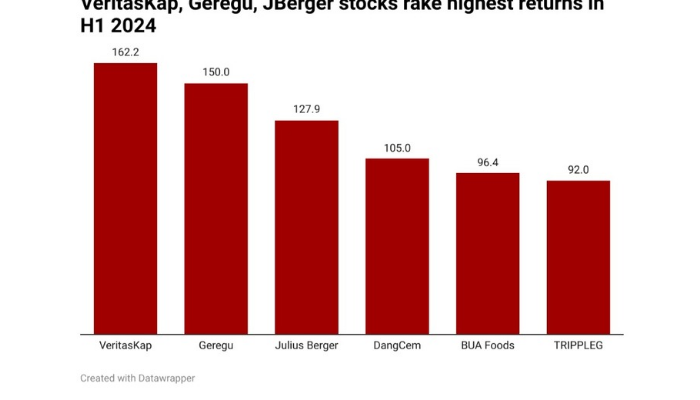 Veritas Kapital, Geregu Power, and Julius Berger topped the list of best-performing stocks in the first half (H1) of 2024.