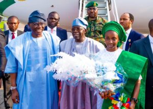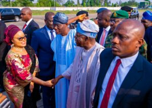 Governor Babajide Sanwo-Olu is welcoming President Bola Tinubu as he arrives Lagos ahead of the commissioning of the Lagos Red Line Rail Project on Thursday.