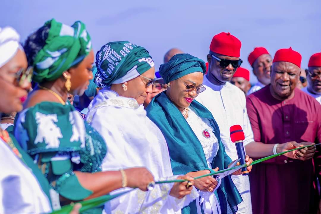 The president’s wife arrived at Okadigbo Airport at 3:17 p.m. and was received by Governor Francis Nwifuru, his wife Mary-Maudline, about 23 wives of governors from different states of the federation, former Secretary to the Government of the Federation (SGF) Anyim Pius, National Assembly members of the state extraction, and other stakeholders.