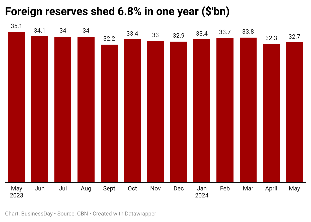 The continued decline in foreign currency reserves last year was caused by low revenue from crude oil sales and increased demand for foreign exchange (FX), among other factors. The FX reserves have declined by 6.8 percent in one year.