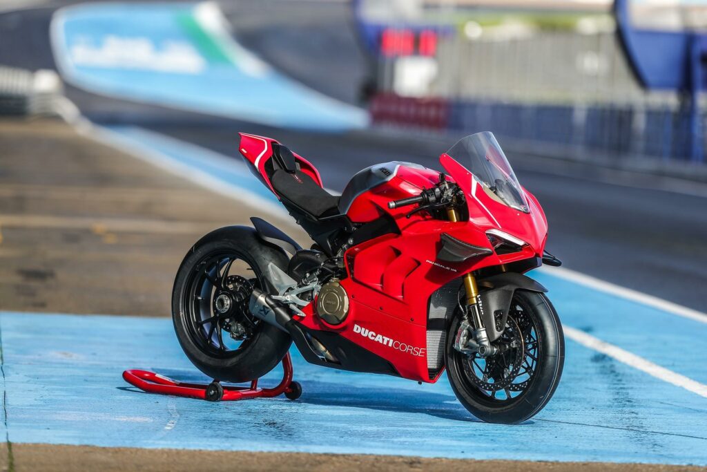 While designed for race circuits, Ducati offers a street-legal variant, the Ducati Superleggera V4, with a remarkable power-to-weight ratio of 1.54 horsepower per kilogram, electronically limited to 186 mph (299 km/h) due to industry agreements.