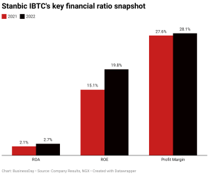 Stanbic’s return on equity for the full year period of 2022 increased by 470 basis points to 19.82 percent compared to 15.12 percent in 2021.
