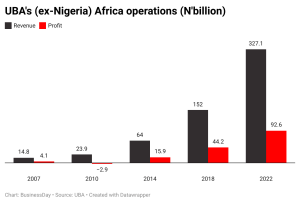 UBA’s (ex-Nigeria) African operations fetched N92.6 billion in profit in 2022, according to the bank’s annual financial statement, accounting for 46.1 percent of the total profit made by the company for the year.