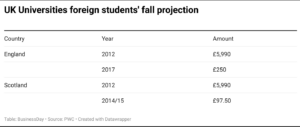 Universities in many United Kingdom (UK) nations are faced with the risk of deficit over falling foreign student intakes and this is feared to cause a reduction in income generation, increase investment requirements, and an escalating cost base.