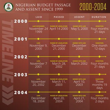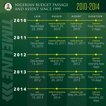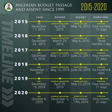 Apart from the years 2001 and 2007, Nigeria since 1999 has had the signing of its annual budgets delayed late into a new fiscal year, leading to poor implementation of the budget, especially the capital component.