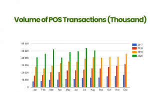The drop may not be unconnected to the impact of the COVID-19 pandemic on the income of many individuals and businesses. August also saw a surge in the number of POS terminals registered across the country. There are 570,601 terminals now registered up from 548,592 recorded in July. The number of terminals deployed stands at 372,330.