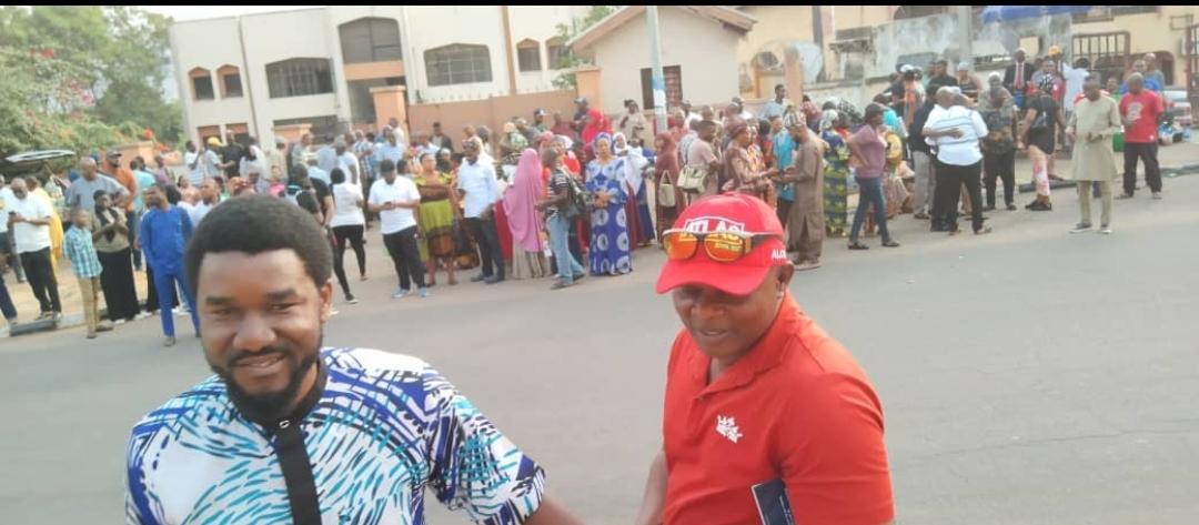 8.00am| Large crowd of voters were already awaiting INEC officials.