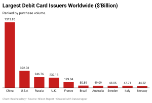 Research shows that UnionPay has the largest share of global card expenditure, with 45 percent, which is largely driven by spending in China, the world’s largest market, where UnionPay accounts for 93 percent of the total.