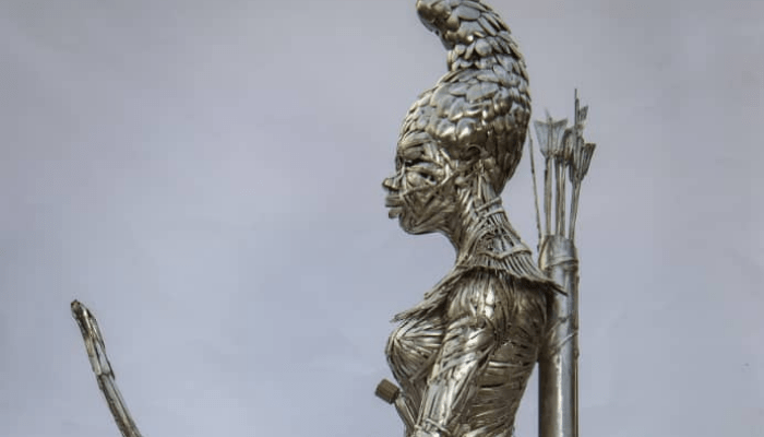 Artist: Abinoro Akporode Collins | Title: The warrior queen | Medium: Stain steel spoons | Dimension: 85” x 44” x 34” | Year: 2020 | Estimate: $16,000 – $17,500 | Status: Available