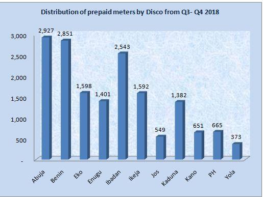 Available records showed that 16,532 prepaid meters were distributed in commensuration to the same number of customers in Q4 2018 across the discos in Nigeria owing to 1 per cent increase from 1.65 million customers in Q3 2018 to 1.67 million customers in Q4 2018.
