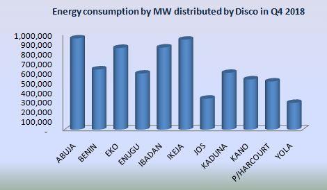 Monthly energy consumption increased by 4.7 per cent and 6.10 per cent from October to November, and November to December respectively in 2018 across the 11 Electricity distribution companies; this measure up to 7,062,313 MW of energy in the last quarter of 2018.