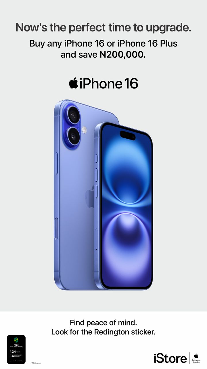 This exclusive offer is valid only while stocks last. For Lagos and Abuja’s most discerning shoppers, now is the time to make the switch — or the upgrade — to iPhone 16 or 16 Plus experience, fully protected and powerfully equipped.