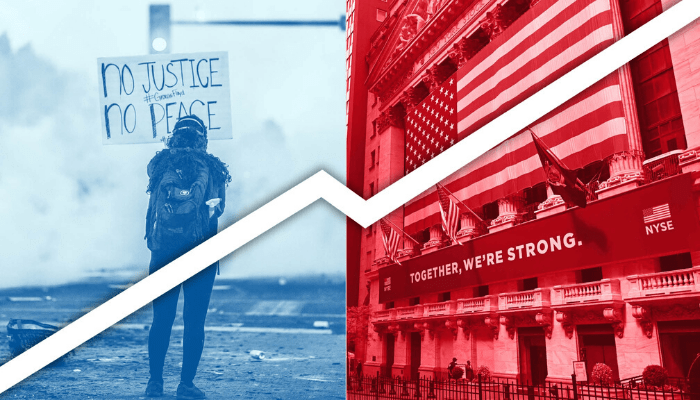 The likelihood of a tumultuous summer on main street as protests continue may not deter Wall Street from its bullishness about the post-Covid economic rebound. A slow recovery that drags on beyond the summer, mirroring the period after the financial crisis, is another matter. The protests on US streets reflect, in part, a call of economic distress. Ultimately, Wall Street may find itself on the wrong side of history.