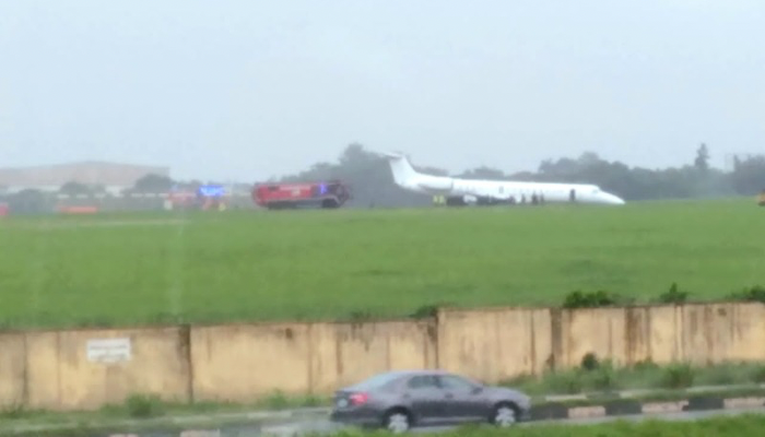 Xejet airlines aircraft skids off runway at Lagos airport