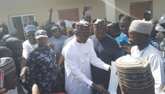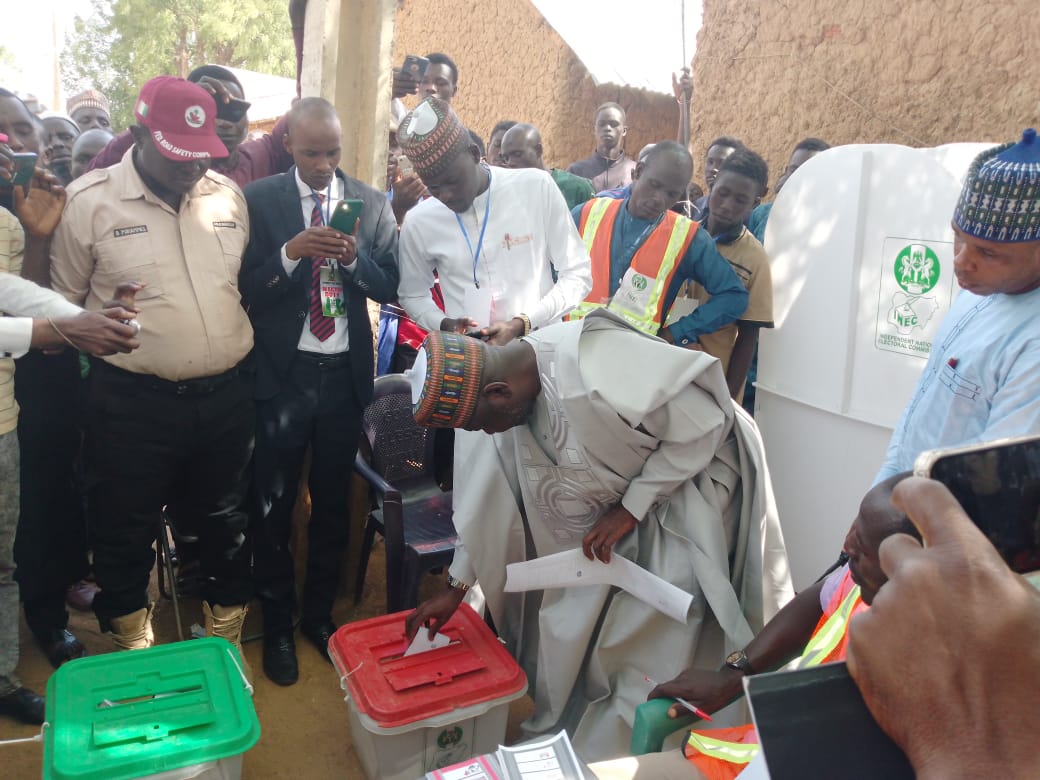 Maimala Buni, governor Yobe State casts his vote at pollin unit 004 Bulturam/Yarimari ward